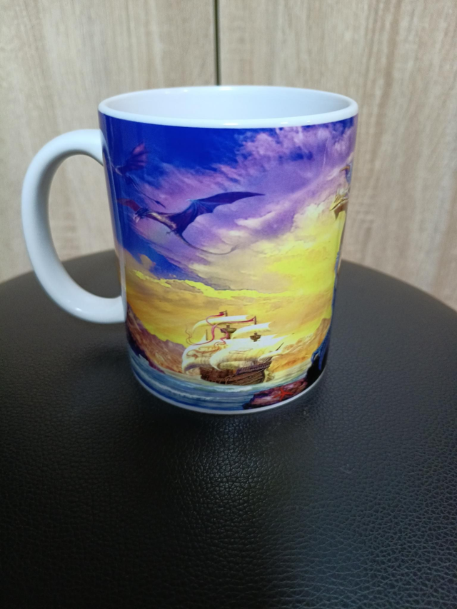 Handmade Sublimationstasse mit Blauer Dracheit mit Schiff Motiv