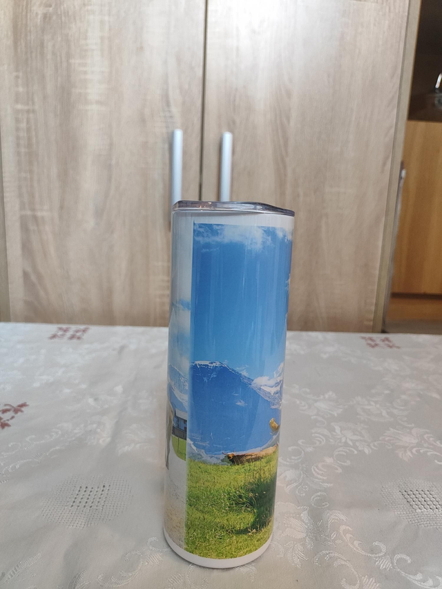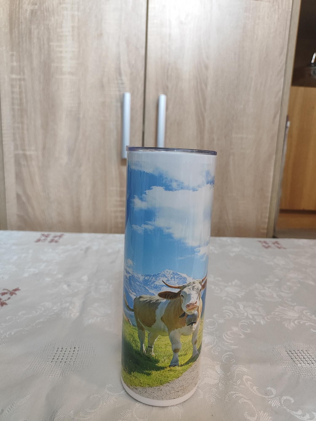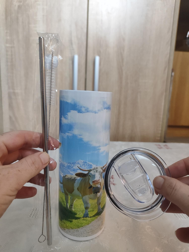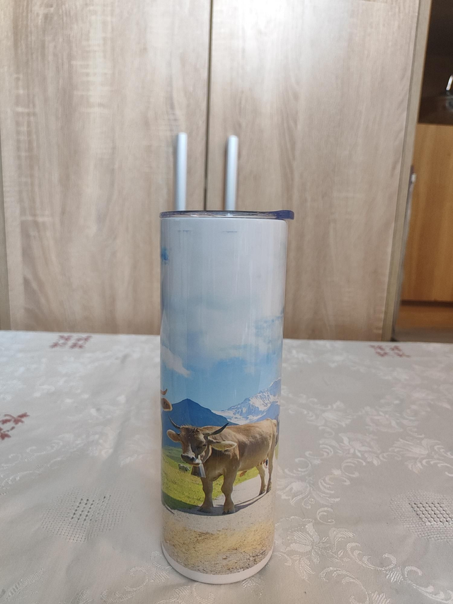 Kuh Edelstahl Thermobecher 20 oz mit Edelstahlstrohhalm und Reinigungsbürste.