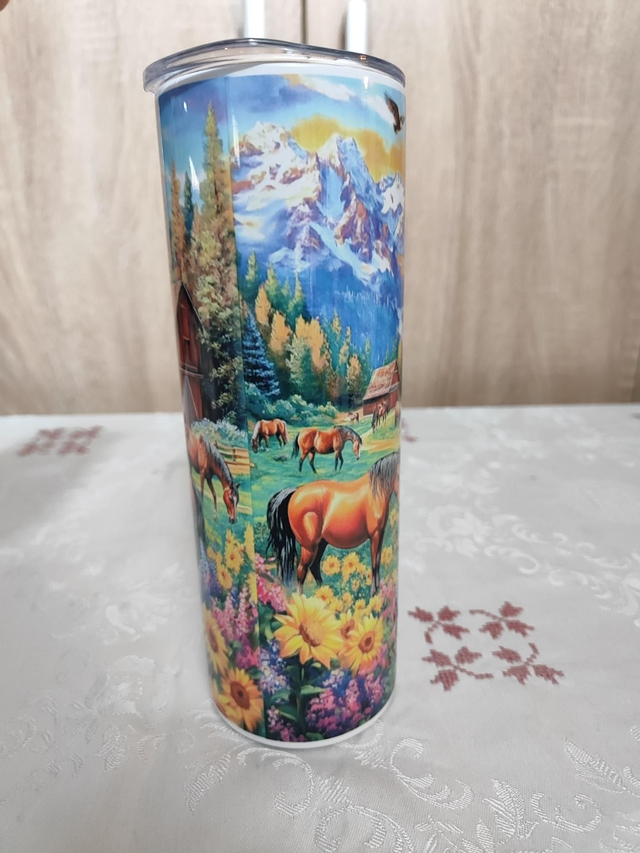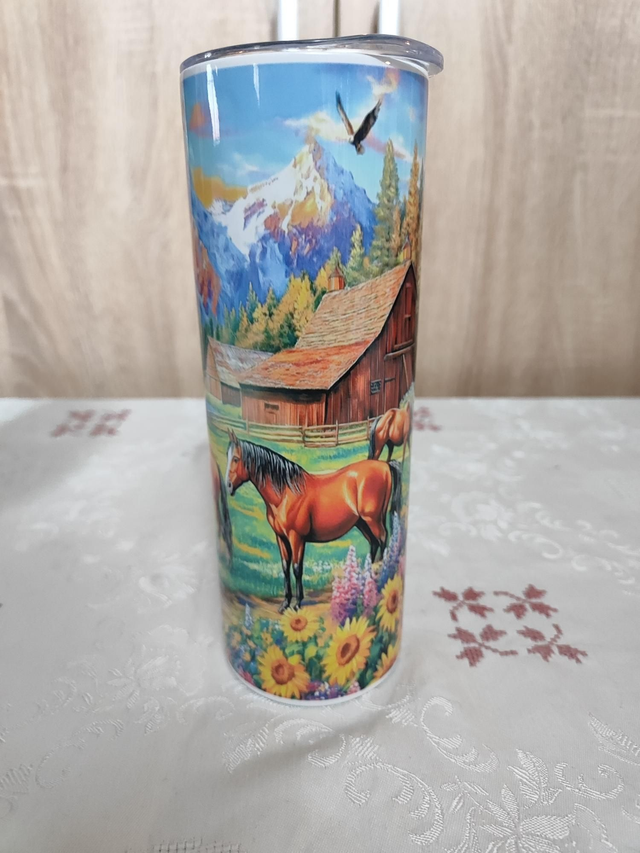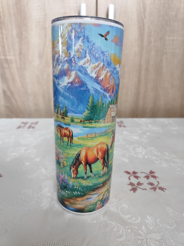 Handmade Sublimationsbecher mit Pferde auf Weide Motiv