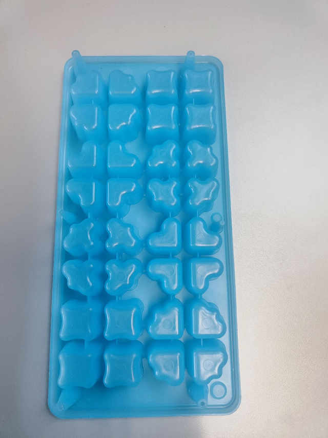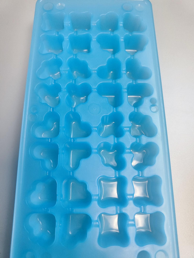 Blaue Eiswürfelform aus Kunststoff für 32 Eiswürfel.