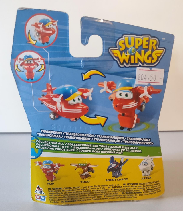 Diese Figur stellt Flip aus der Super Wings-Serie dar, eine Figur, die sich vom Fluzeug in einen Roboter verwandeln kann.
